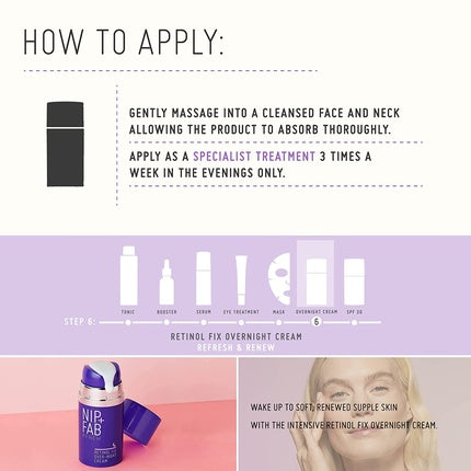 Nip+FabCremă de noapte Nip+Fab Retinol Fix, un produs dedicat îngrijirii tenului cu tendințe de îmbătrânire. Conține 0.1% retinol și acid hialuronic, ingr...