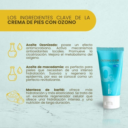 Ozono DorCremă pentru picioare Ozono Dor, oferită într-un ambalaj de 50g de culoare albastră, special formulată pentru a aborda problemele comune ale pielii...