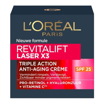 L'Oréal ParisL'Oréal Paris Revitalift Laser X3 este o cremă de zi cu o formulă avansată, special concepută pentru a reduce apariția ridurilor și a îmbunătăți fe...