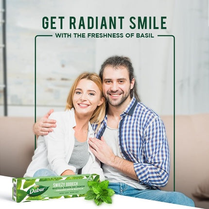 DaburPasta de dinti Dabur Fresh Breath, intr-un ambalaj de 100ml, ofera o experienta revigoranta datorita extractului de busuioc organic. Aceasta pasta ...