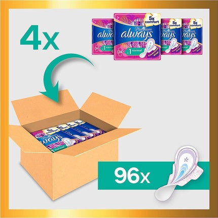 AlwaysAbsorbantele Always Platinum Normal pentru femei sunt concepute pentru a oferi confort și protecție de lungă durată. Acestea sunt prevăzute cu arip...