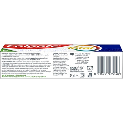 ColgatePastă de dinți Colgate Total Natural Whitening, cu o capacitate de 75ml, este creată pentru a oferi protecție antibacteriană completă timp de 24 de...