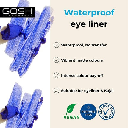 GoshEyeliner-ul Gosh Matte în nuanța de albastru strălucitor este un produs esențial pentru conturul ochilor, având o textură cremoasă care permite apl...