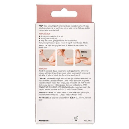 Set unghii false, Kiss, Bare But Better, 28 bucăți, nuanță nude
