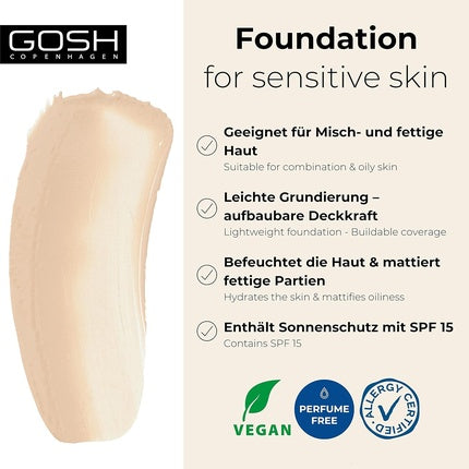 Vezi detalii completeFond de ten GOSH, Matte, SPF 15, Nuanta 012Y