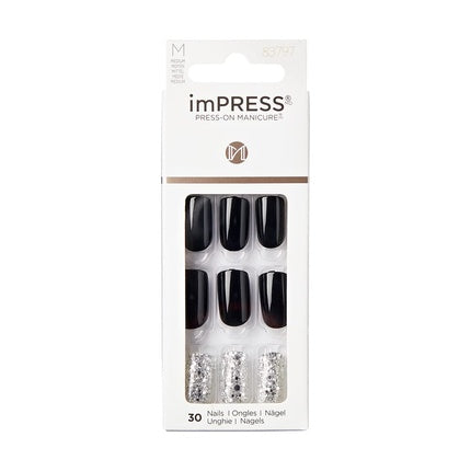 Vezi detalii completeUnghii False, Kiss, imPRESS Medium, negre cu sclipici