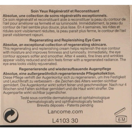 LancômeCremă pentru ochi Lancôme Absolue Yeux, oferă îngrijire regenerantă și reconstituantă, special creată pentru zona delicată a ochilor. Cu o formulă ...