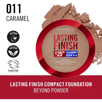 RimmelRimmel Lasting Finish 25 HR Compact Foundation în nuanța 011 Caramel este alegerea ideală pentru un ten impecabil, oferind o acoperire buildabilă c...