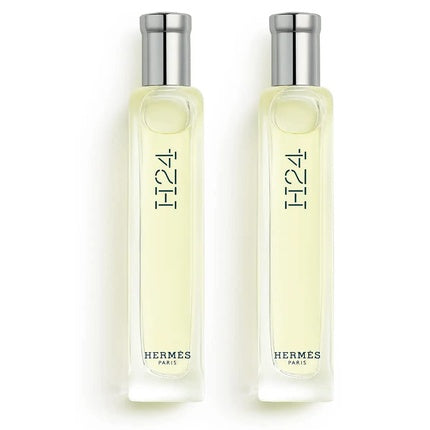 HermèsSetul Hermès H24 pentru bărbați conține două flacoane miniaturale de Eau de Toilette de 15ml fiecare, ideal pentru cei care apreciază eleganța în f...
