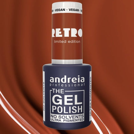 AndreiaAndreia Professional The Gel Polish din colectia limitata RETRO aduce o nuanta rafinata de maro terracotta, perfectă pentru oricine dorește o manic...