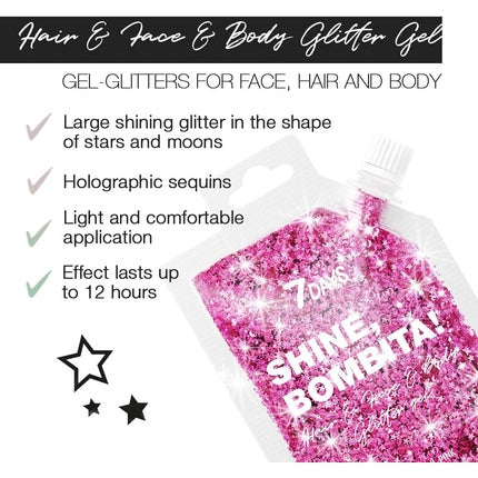 Gel sclipici corp si păr 7days, Shine Bombita, roz