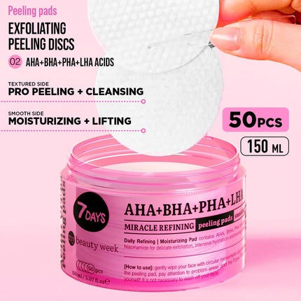 Dischete Peeling, 7days, AHA+PHA, Roz