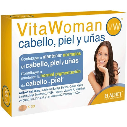 EladietSuplimentul Eladiet Vitawoman este conceput pentru a susține sănătatea părului, pielii și unghiilor. Formula sa specială conține ingrediente esenți...
