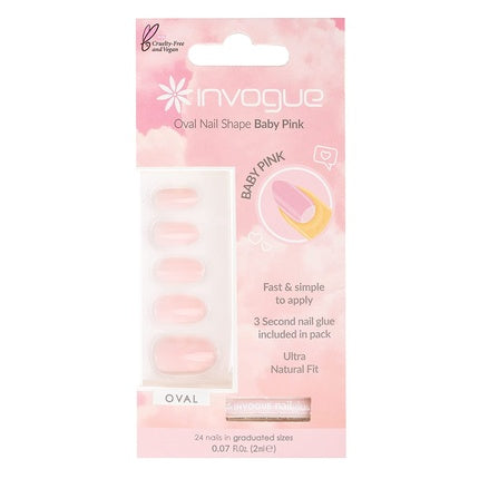 InvogueInvogue prezintă un set de unghii false ovale, într-o nuanță feminină de roz baby, perfecte pentru un aspect îngrijit și elegant. Cu 24 de unghii i...