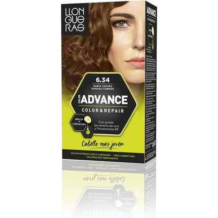 LlonguerasLlongueras Advance Color Repair este o vopsea de păr permanentă ce oferă un colorit intens și vibrant până la 5 săptămâni. Nuanta 6.34, Blond Închi...