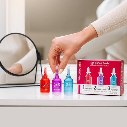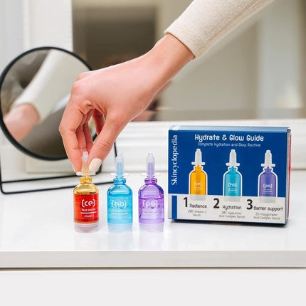 SkincyclopediaSetul de serumuri faciale Skincyclopedia este destinat îngrijirii tenului, oferind hidratare și luminozitate. Fiecare set include trei sticle disti...