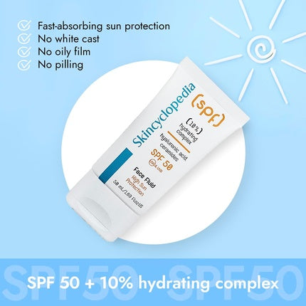 SkincyclopediaFluidul de protecție solară pentru față de la Skincyclopedia, cu un factor de protecție ridicat SPF 50, este conceput pentru a oferi o barieră efic...